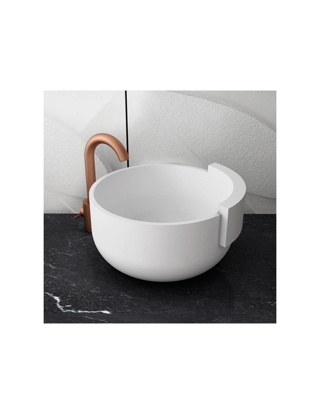 Este lavabo sobre encimera se caracteriza por su forma semicircular, una forma geométrica básica que le da carácter y personalidad. Su instalación es fácil de realizar y da un toque innovador y moderno al cuarto de baño. Los lavabos sobre encimera son ideales para combinar con encimeras del mismo material o de otros materiales. Es un modelo muy útil para lugares públicos con clase.