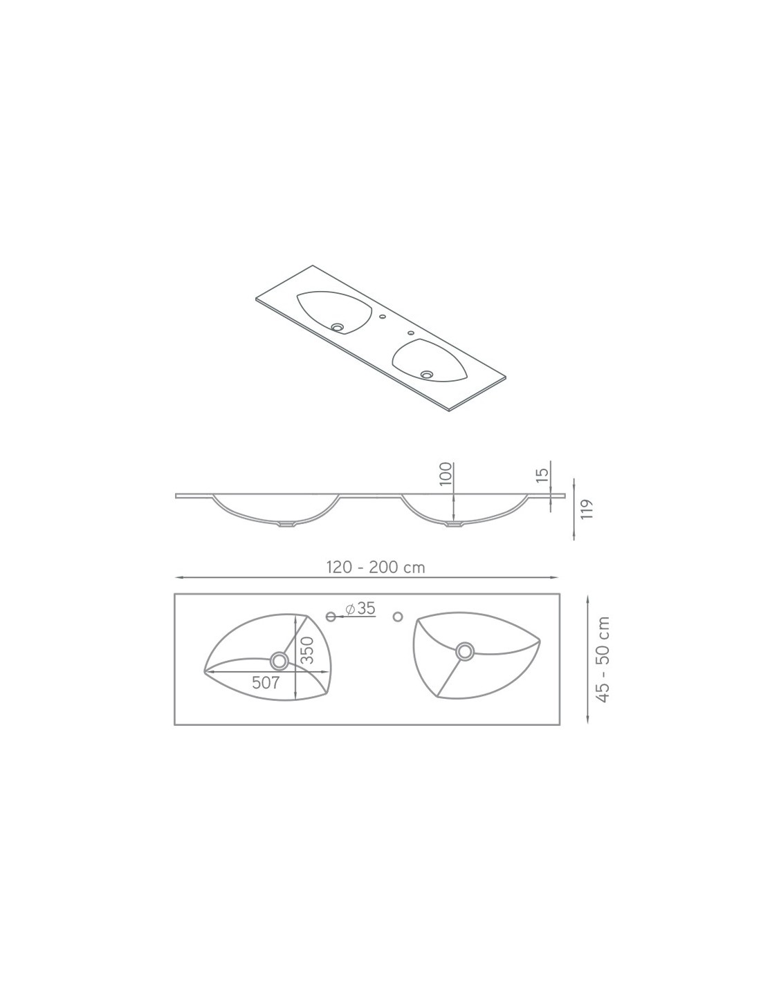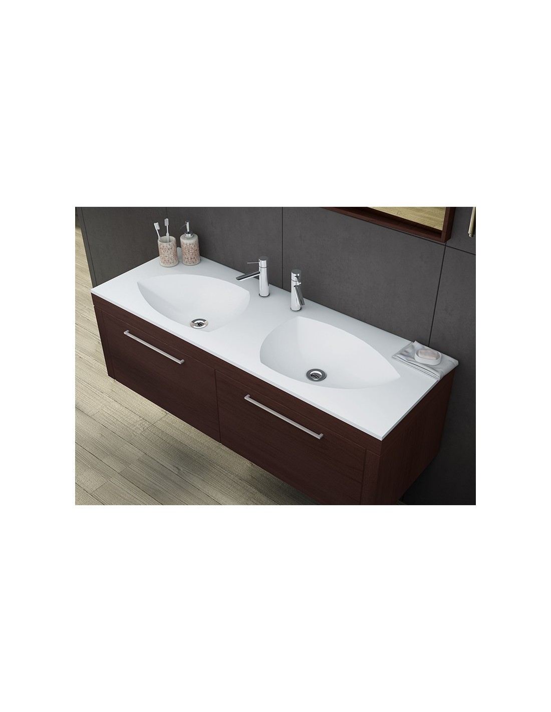 El lavabo doble AmeliPlus es perfecto para montaje sobre muebles. Diseñado con dos senos AmeliPlus juega con las formas asimétricas, añadiendo elegancia y modernidad. Este lavabo de diseño está fabricado con el material SurfacePlus (SolidSurface), un material de alta calidad, que aportan ese blanco puro y un agradable tacto suave.
