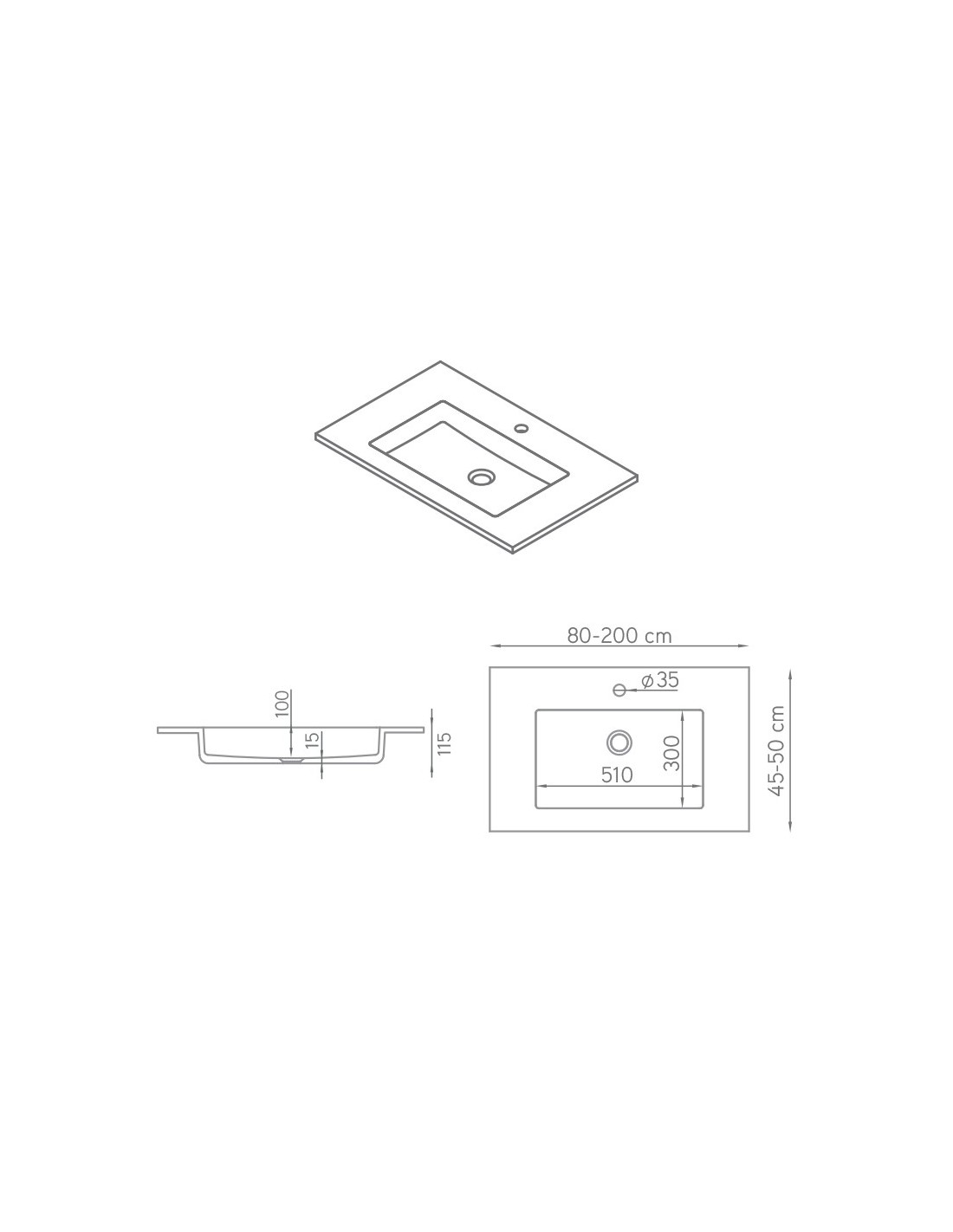 Lavabo con encimera y seno encastrado Alfa. Disponible en varios colores y texturas. Diseño de lavabo rectangular para montaje sobre mueble. Fabricación en St-one.