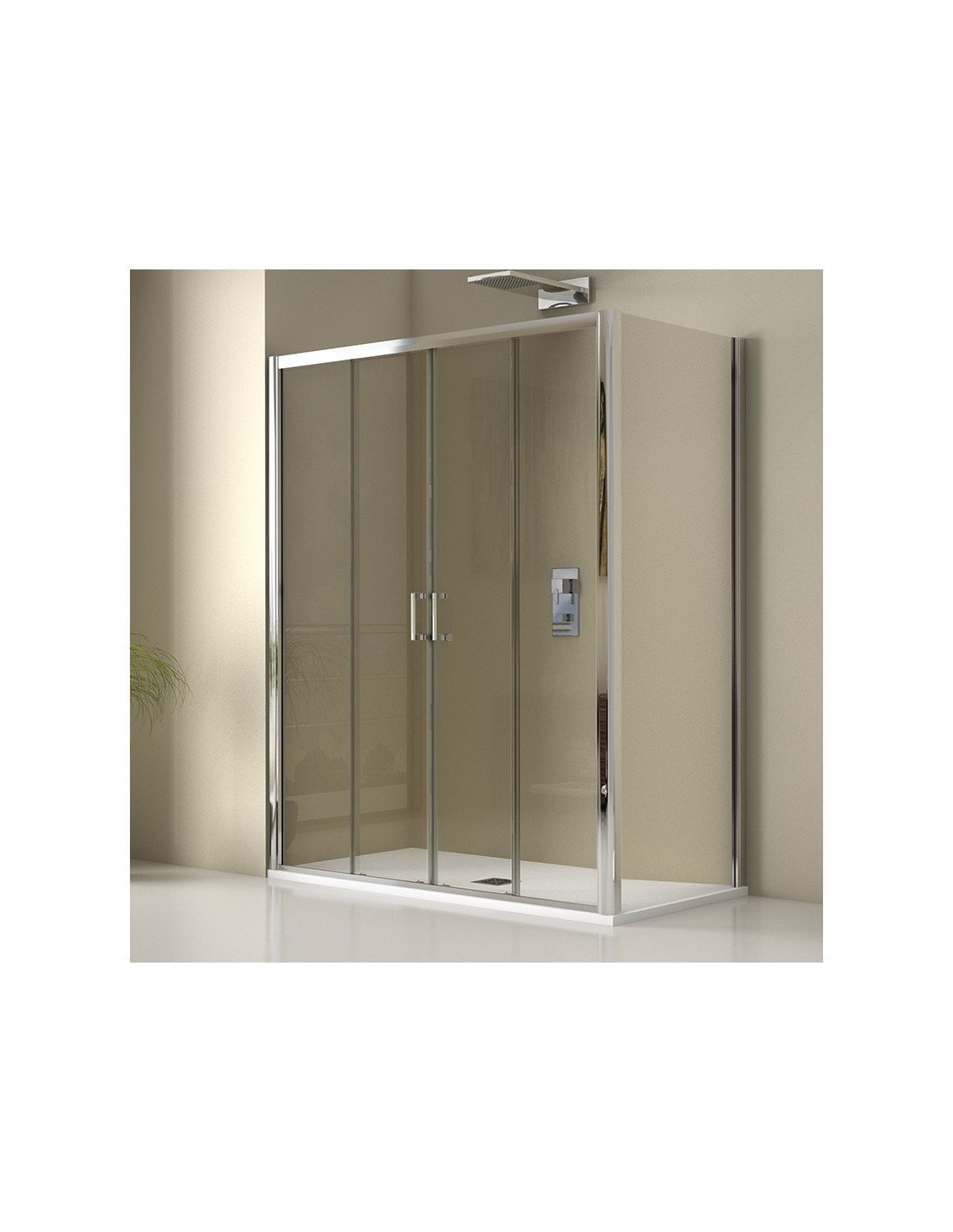 Mampara doble puerta y doble fijo en línea X-80 + Fijo en ángulo X60SP