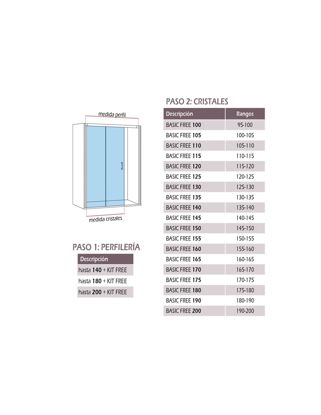 Mampara de ducha BASIC FREE con perfil en varias medidas y fijo + corredera está disponible en todas las medidas con vidrios de 6 mm. Sin perfilería inferior y con Antical Estándar incluido.
