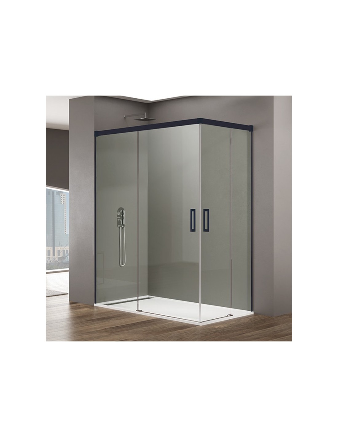 Mampara de ducha BASIC - angular al vértice - perfil NEGRO MATE