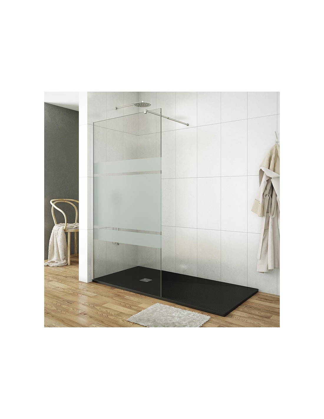 Mampara de ducha SCREEN es una mampara de ducha compuesta por un vidrio fijo de 8 mm. Es un fijo de ducha simple pero funcional, que incorpora perfilería de aluminio solo en su fijación a pared. Además, es personalizable con la serigrafía FROS PLUS.