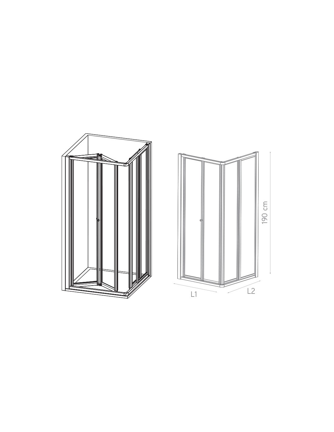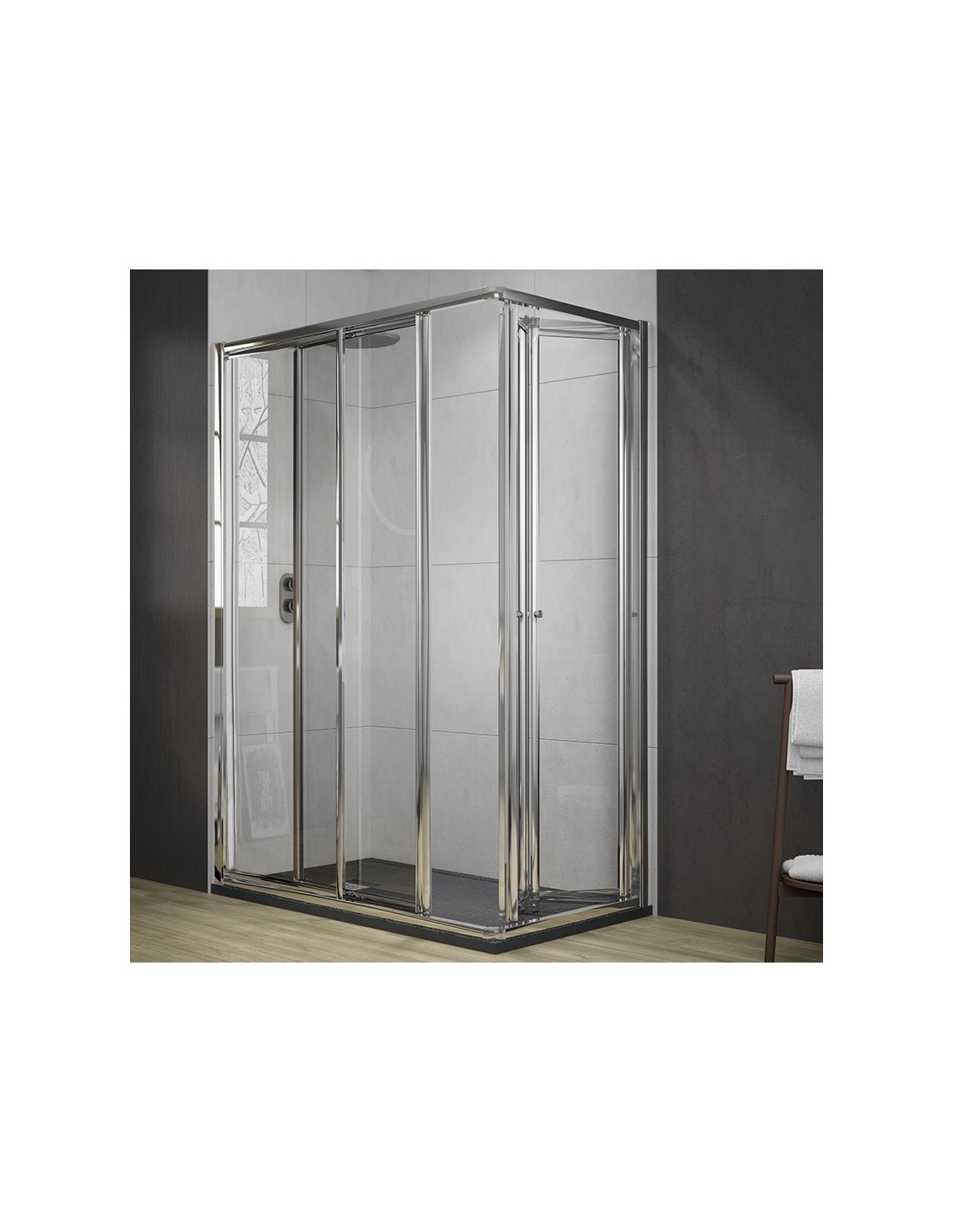 Mampara de ducha cuadrada Cairo - puerta plegable + puerta corredera