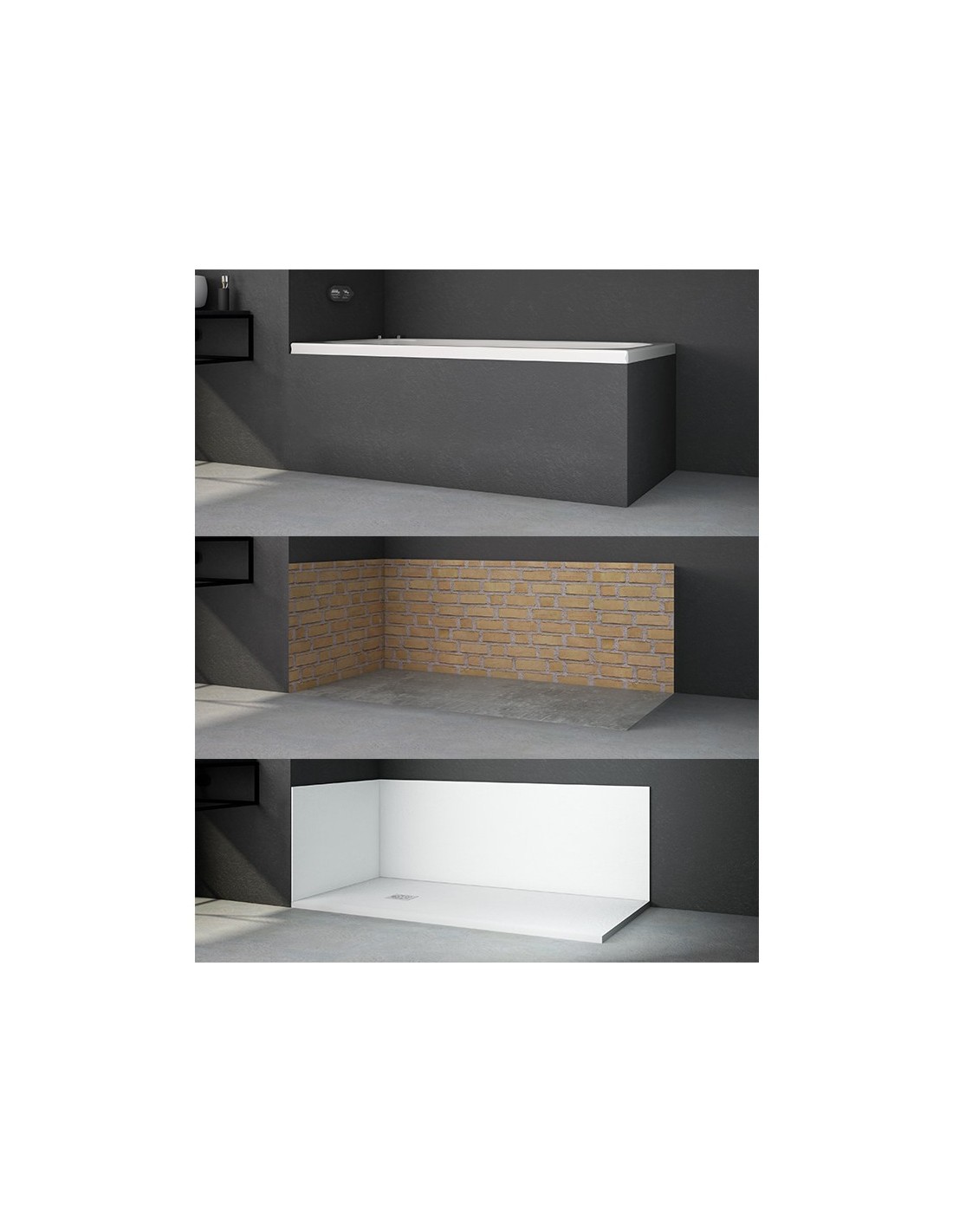 Paneles de revestimiento fabricados con el material ST-ONE, con una amplia colección de colores y texturas. Especialmente pensados para reemplazar la bañera por plato de ducha de una forma sencilla y rápida. Tratamiento antibacteriano.