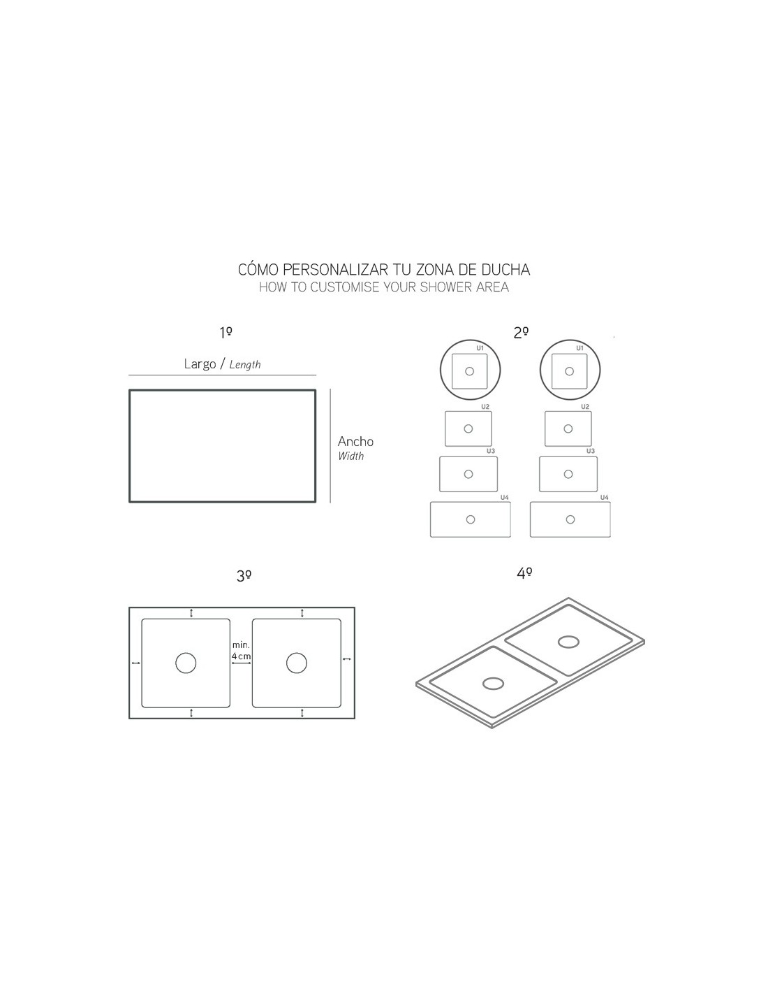 Unic es un plato ducha con personalidad propia. Su diseño permite una adaptación completa a tu espacio de ducha. Para ello, solo tienes que medir la zona donde vas a colocar el plato de ducha, selecciona dos de las zonas de ducha y colocarla dentro del las medidas seleccionadas. Además, su versatilidad permite su perfecta adaptación a cualquier columna o desnivel de la pares.